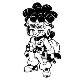 ヤチマの友人でハッカーをやっているよ 持ち前の剣には改造を施していて 電気をまとわせているんだ ヘッドギアには色々な機能があって フェイスカバーからハッキングとその用途は広いよ 企業からのハッキング依頼が多い!